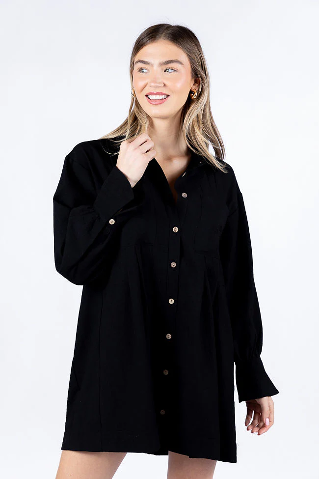 Write This Down Black Button Up Shirt Dress FINAL SALE - Aiturbor