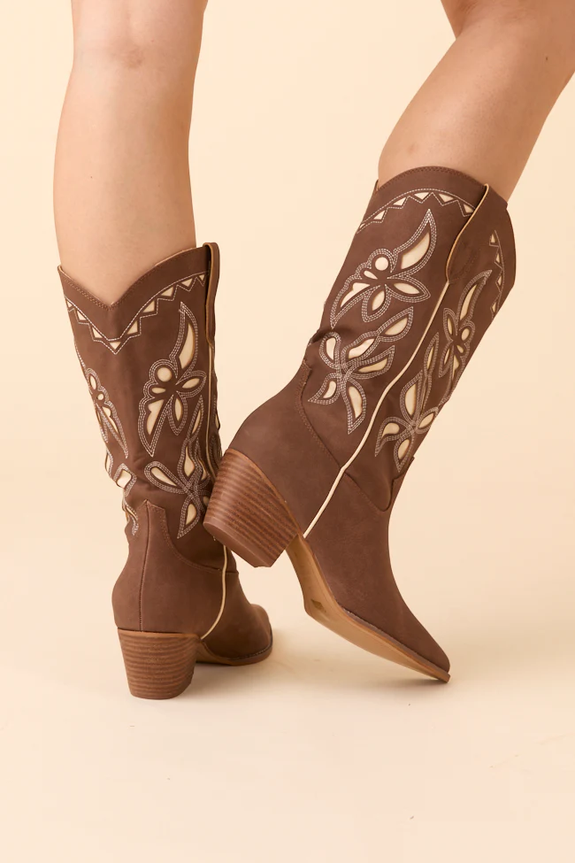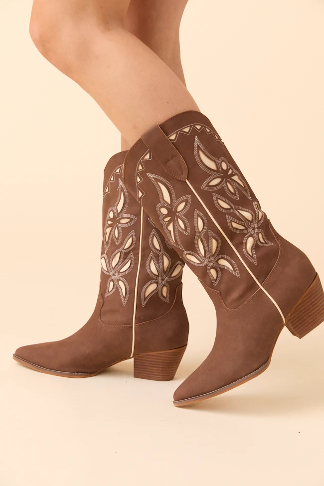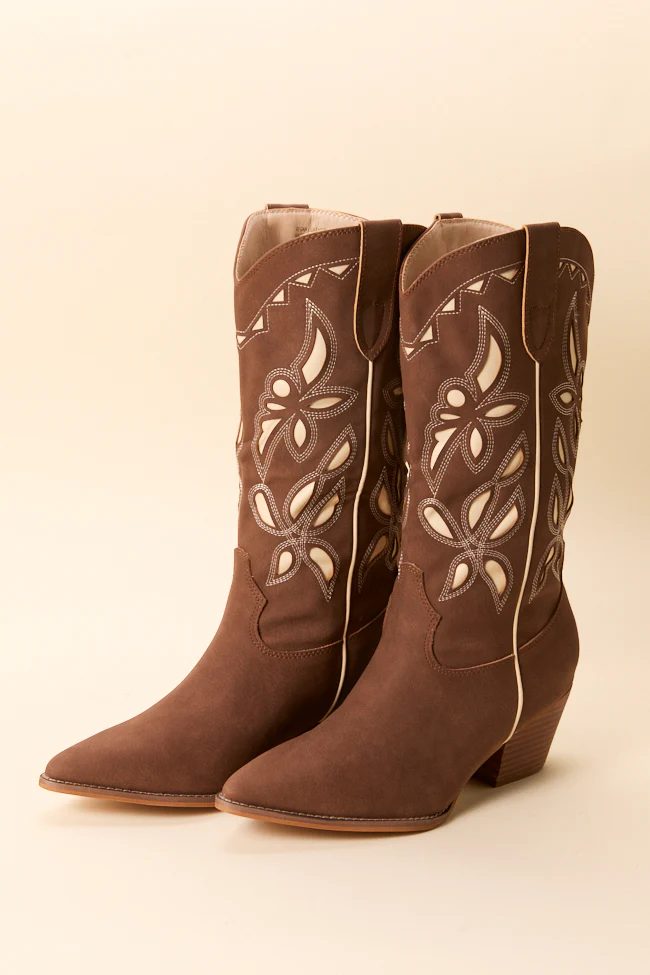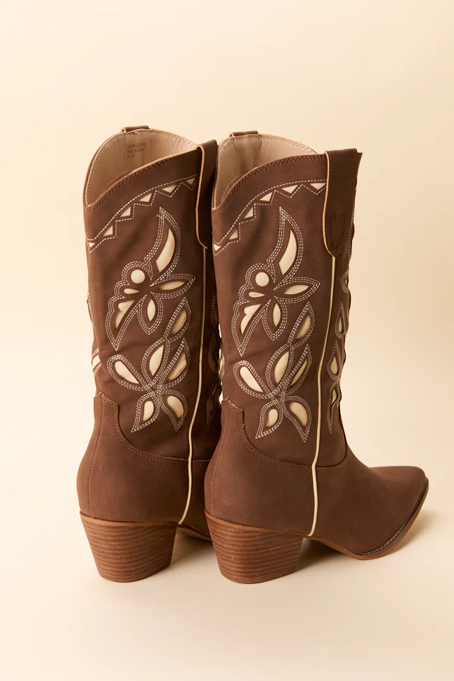 Zinnia Brown Cutout Cowboy Boots