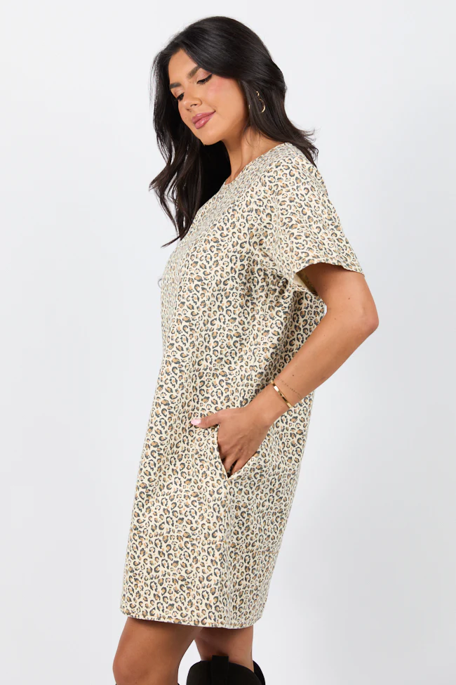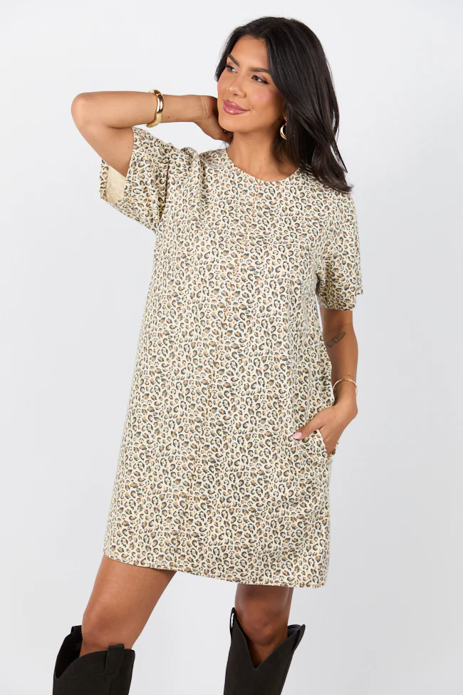 Wild Nights Taupe Leopard Print Shift Dress SALE