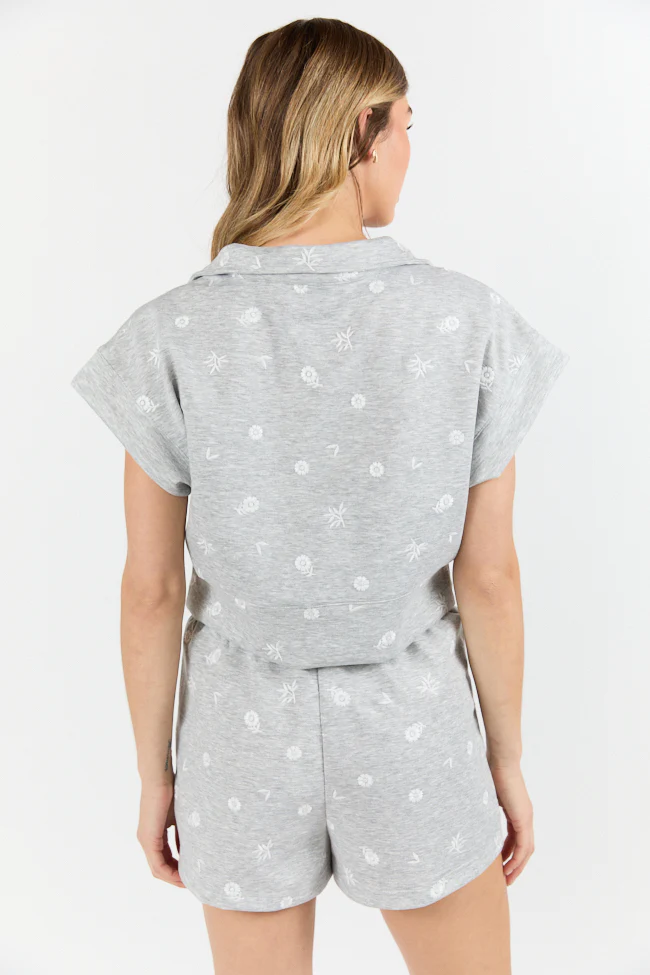 What A Catch Grey Floral Embroidered Half Zip Top SALE
