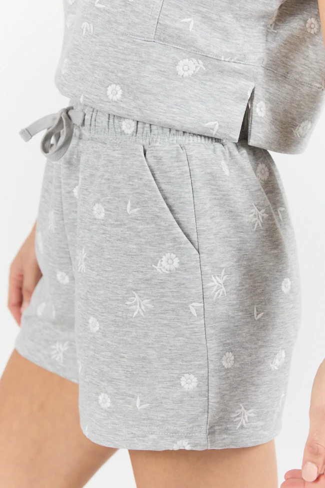 What A Catch Grey Floral Embroidered Shorts SALE