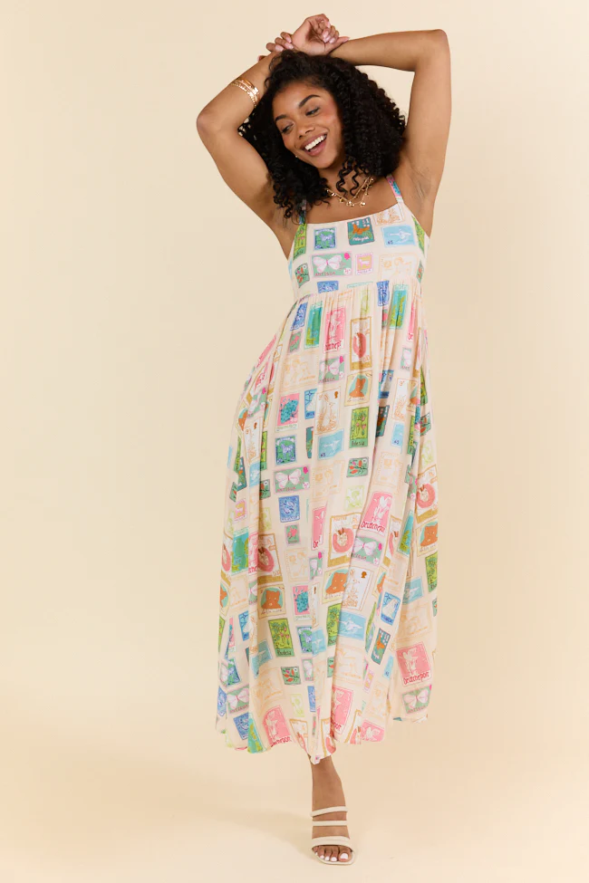 World Traveler Stamp Print Midi Dress FINAL SALE