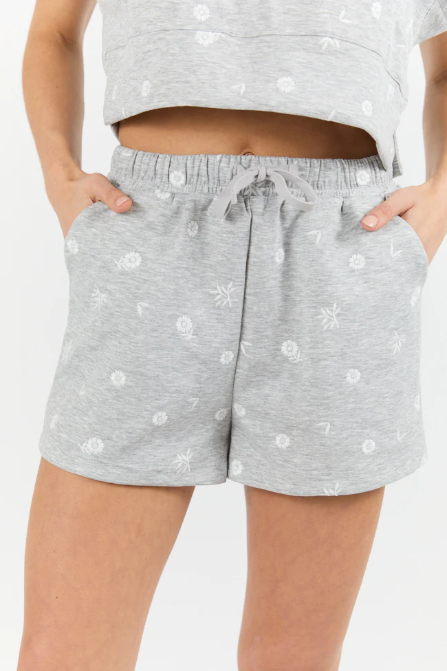 • What A Catch Grey Floral Embroidered Shorts SALE - Aiturbor