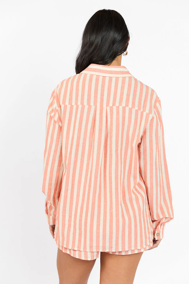 With The Tide Coral Striped Button Up Top FINAL SALE