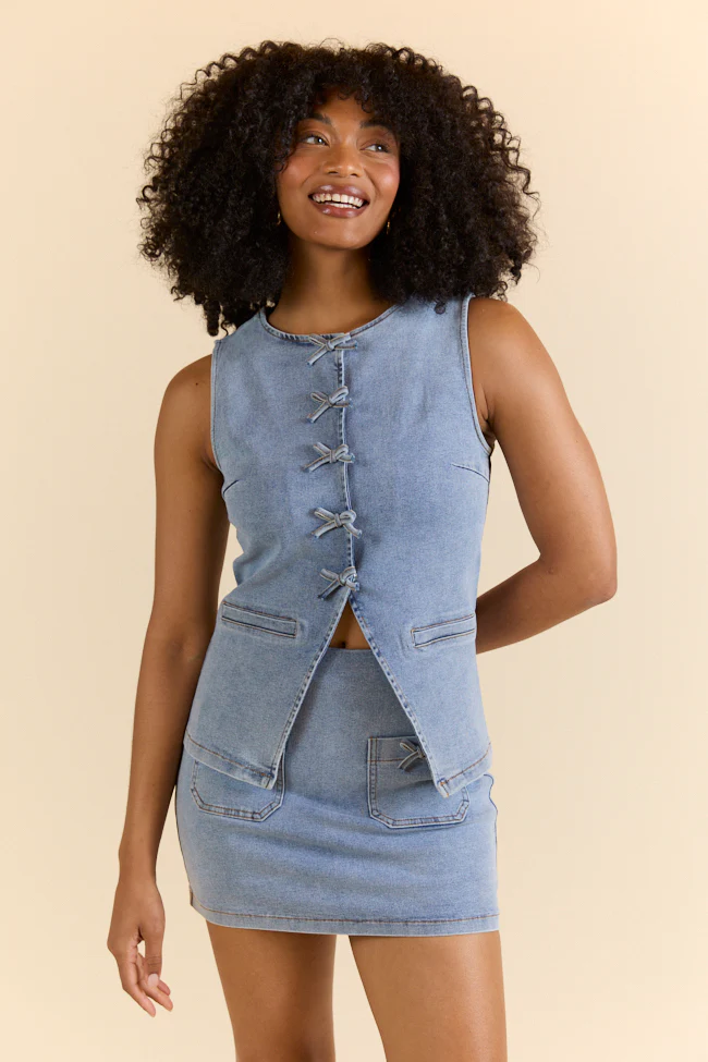 • Western Ties Bow Denim Vest - Aiturbor