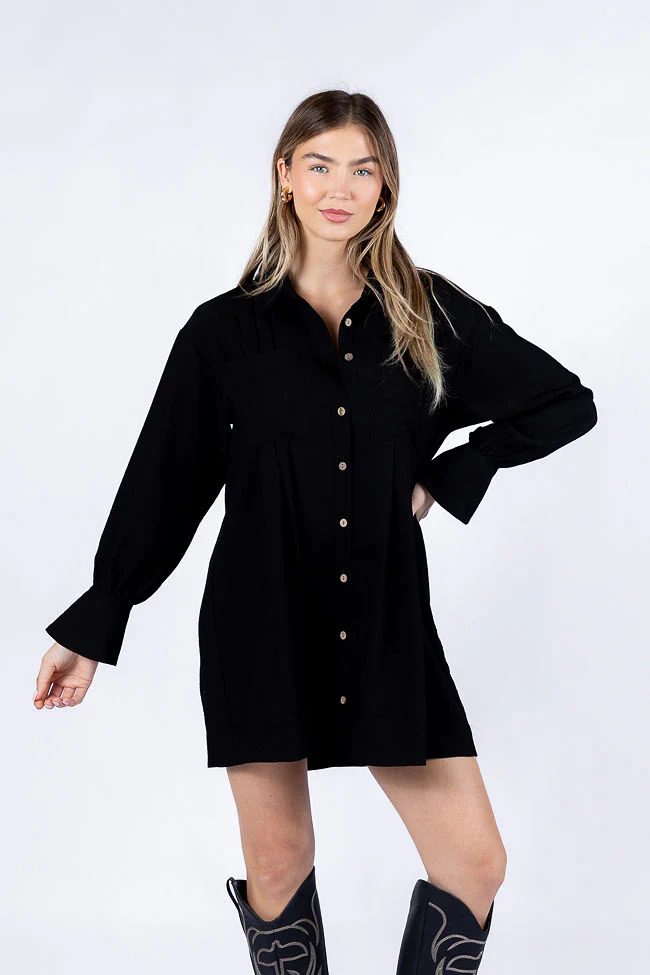 Write This Down Black Button Up Shirt Dress FINAL SALE
