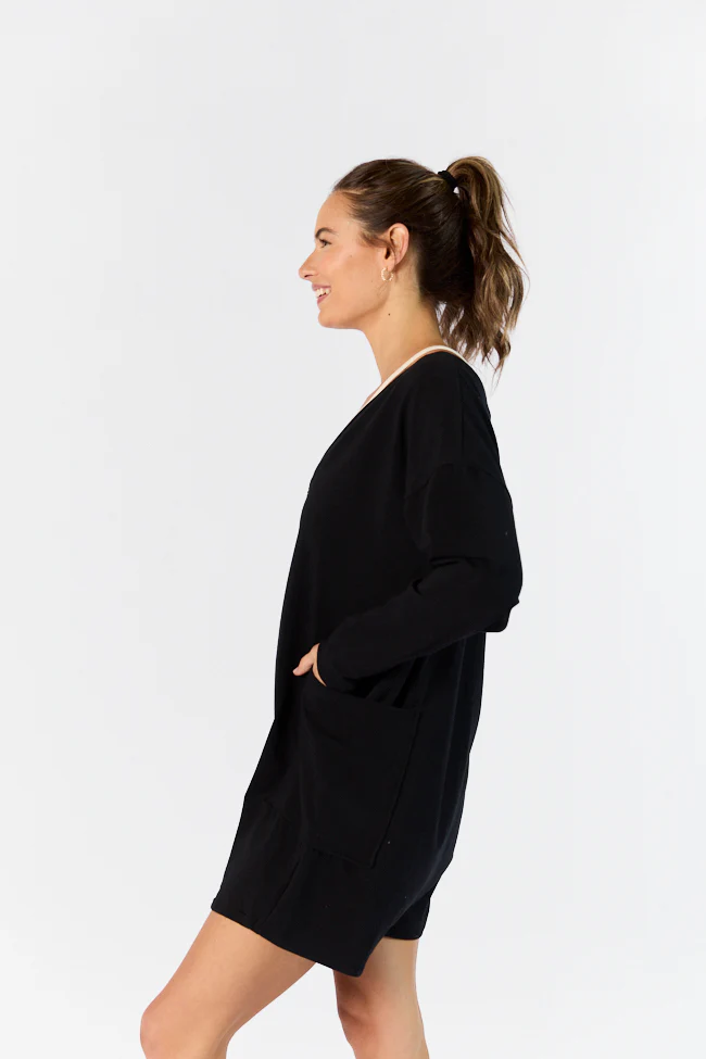 On A Daily Basis Black Deep V-Neck Pocketed Long Sleeve Romper FINAL SALE