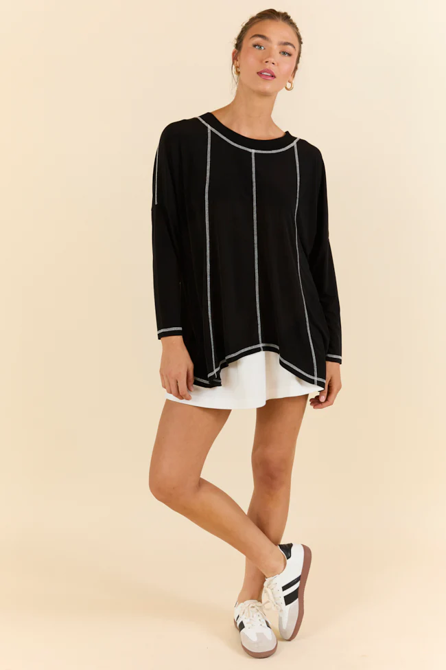 Play On Black Long Sleeve Split Back Top FINAL SALE