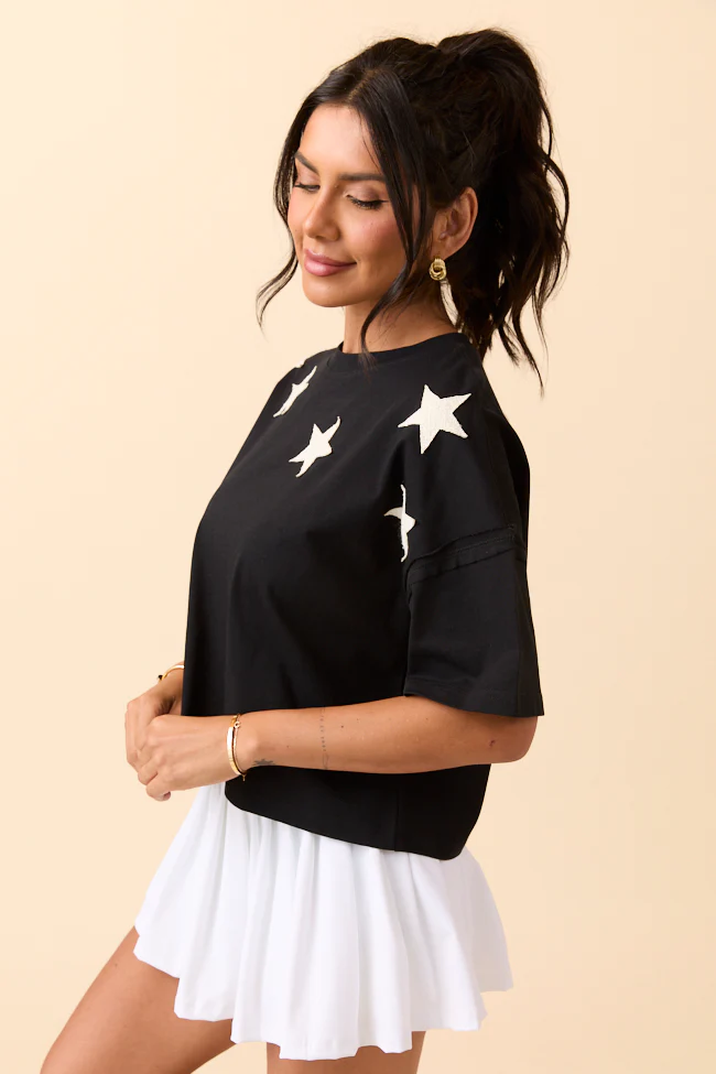 Sally Black Stars Cropped Knit Short Sleeve Top