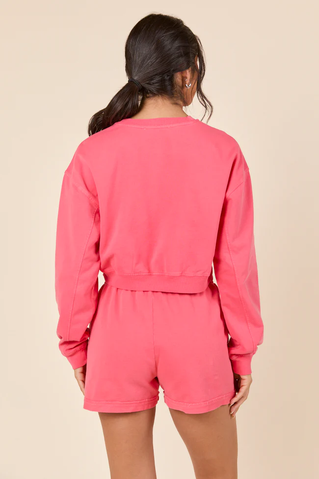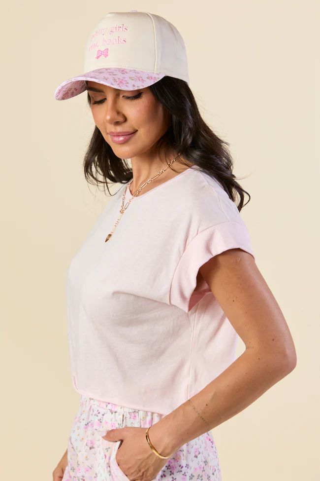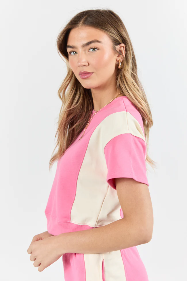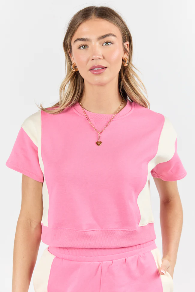 Make Or Break Pink and Ivory Contrast French Terry Short Sleeve Sweatshirt SALE