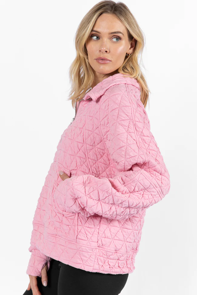 Love Is Everything Pink Quilted Quarter Zip Pullover FINAL SALE