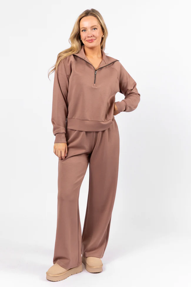 Let's Just Stay Mocha Quarter Zip Knit Pullover FINAL SALE