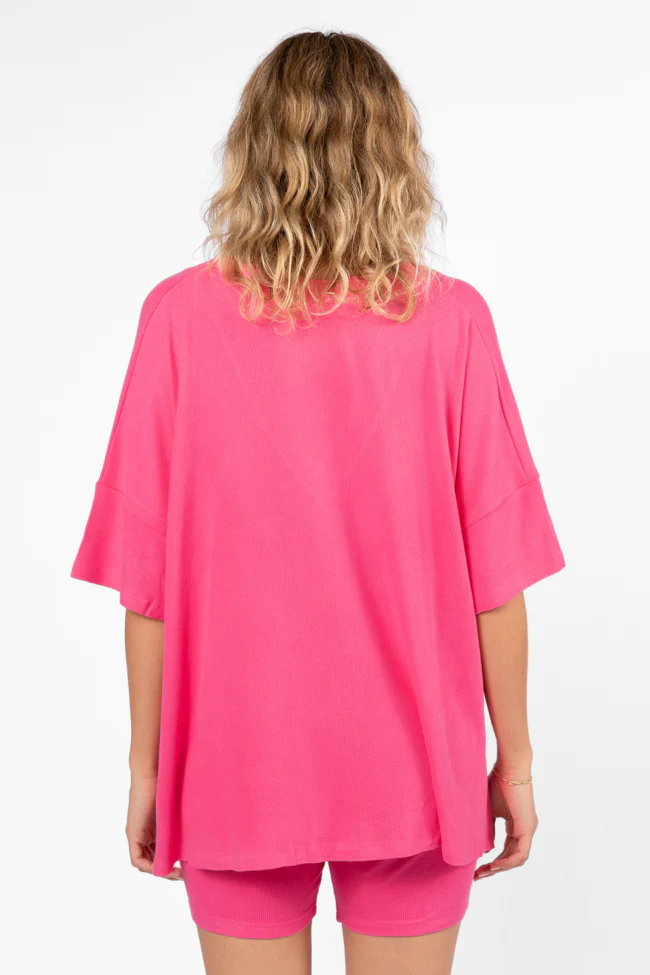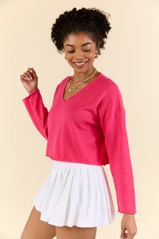 No Bad Days Hot Pink Drop Shoulder V-Neck Pullover SALE