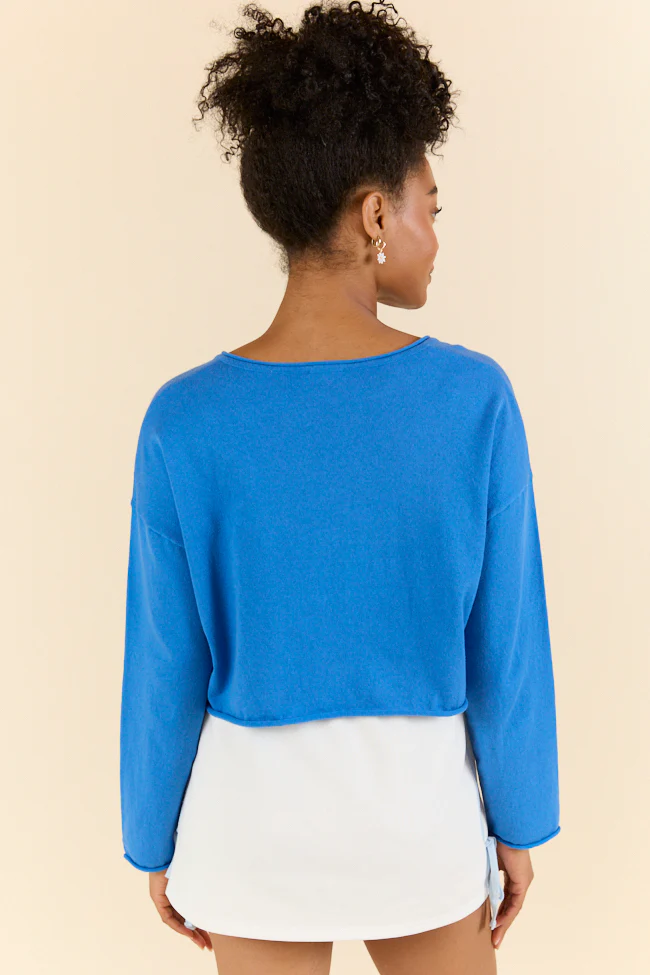 No Bad Days Blue Drop Shoulder V-Neck Pullover SALE