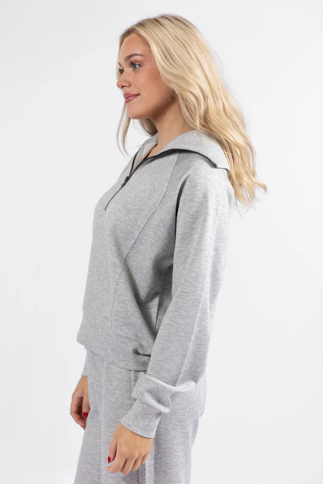 Let's Just Stay Heather Grey Quarter Zip Knit Pullover SALE