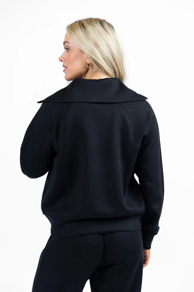 Let's Just Stay Black Quarter Zip Knit Pullover FINAL SALE