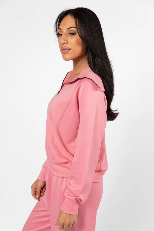 Let's Just Stay Pink Quarter Zip Knit Pullover FINAL SALE