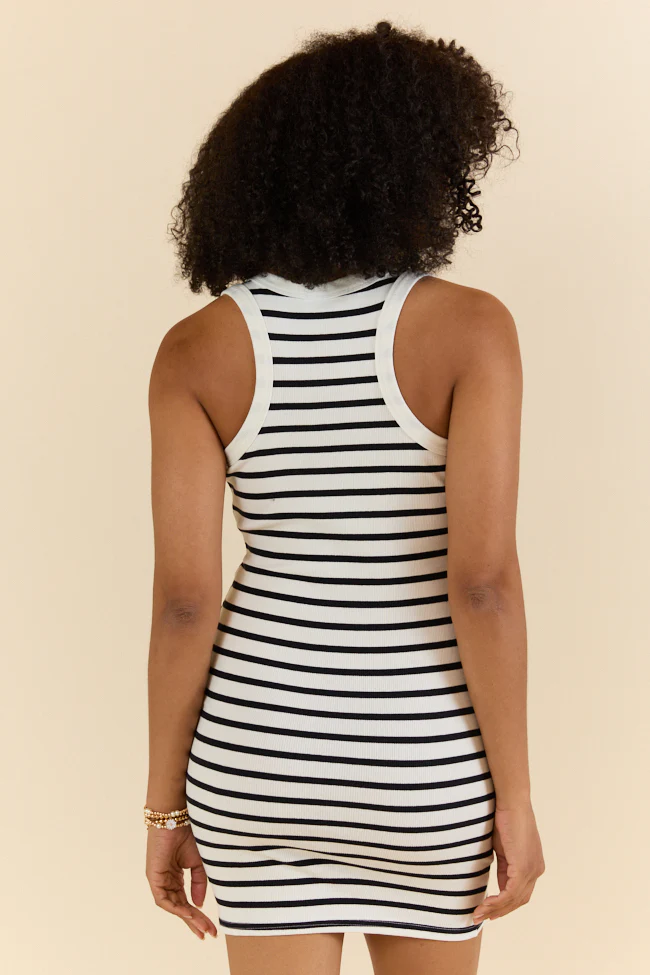 Lead The Way White and Black Striped Knit Dress DOORBUSTER