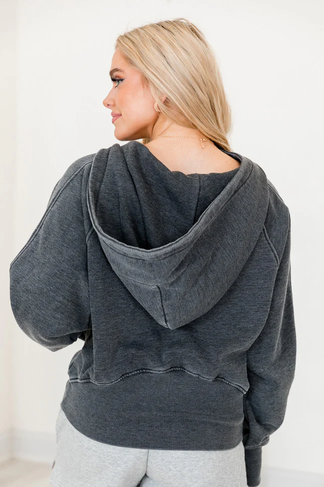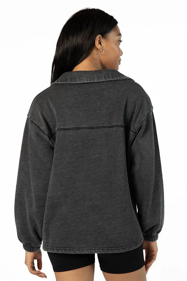 Learn As You Go Black Acid Washed Quarter Zip Pullover FINAL SALE