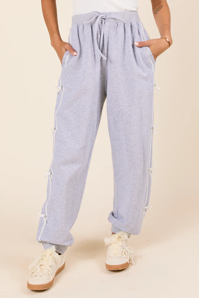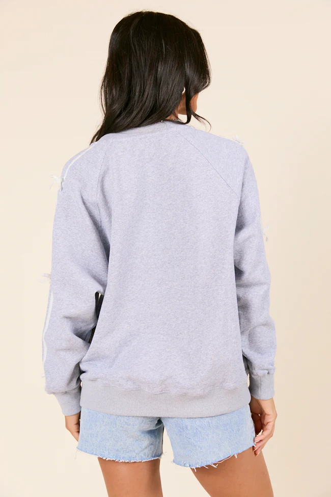Kinley Heather Grey Side Bow Detail Crewneck Sweatshirt