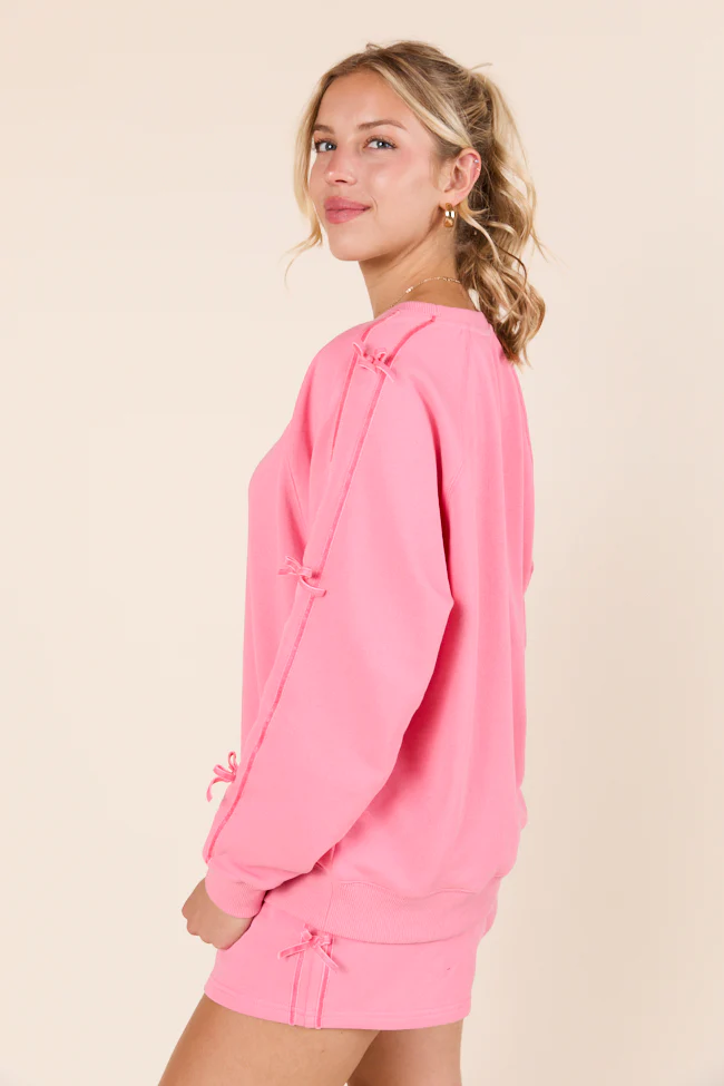 Kinley Pink Side Bow Detail Crewneck Sweatshirt