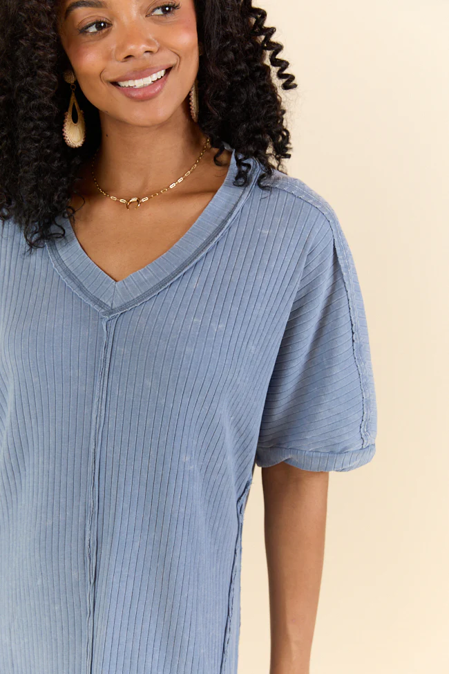 High Temperatures Blue Acid Wash Knit Dress FINAL SALE