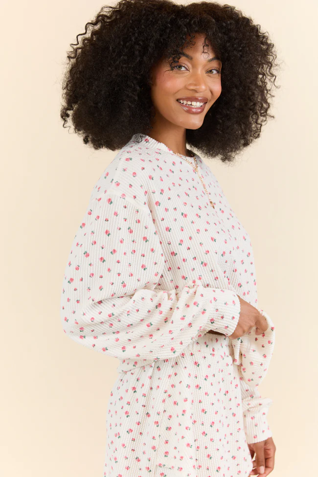 Just Focus Ivory Florette Long Sleeve Shirt FINAL SALE
