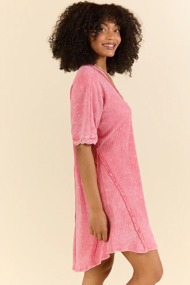 High Temperatures Hot Pink Acid Wash Knit Dress FINAL SALE