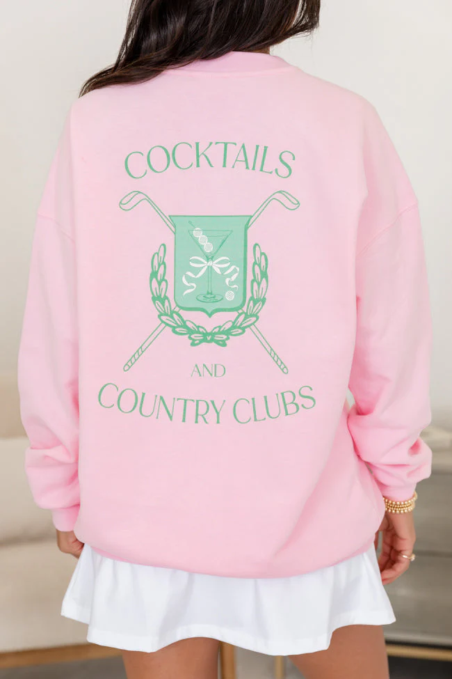 Cocktails And Country Clubs Light Pink Graphic Sweatshirt