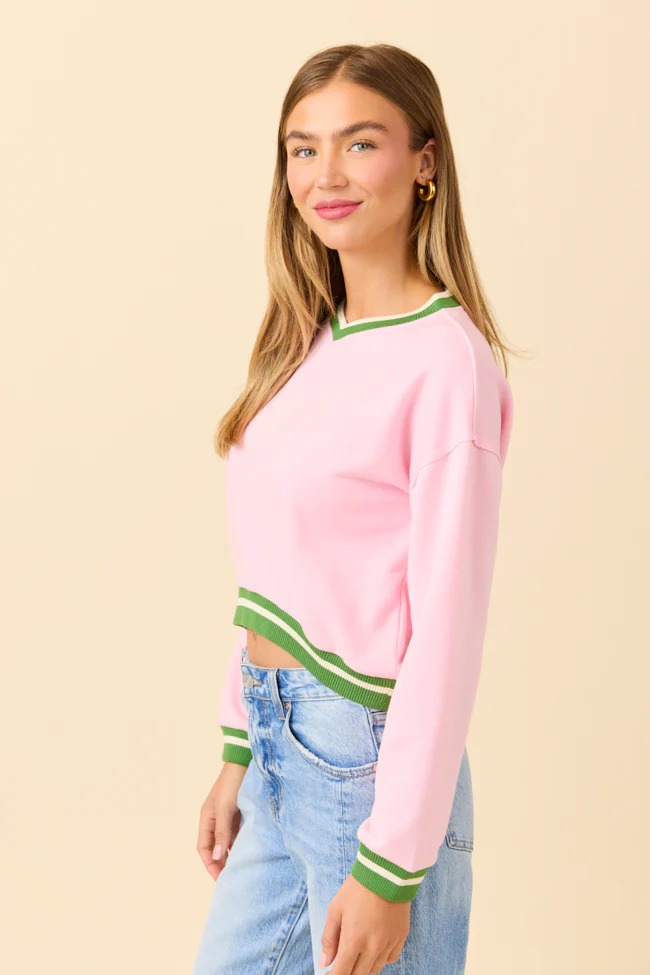 Beatrice Pink and Green Cropped Sporty Sweatshirt