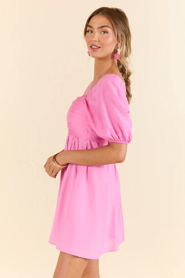 Take Your Time Pink Pleated Short Sleeve Mini Dress FINAL SALE