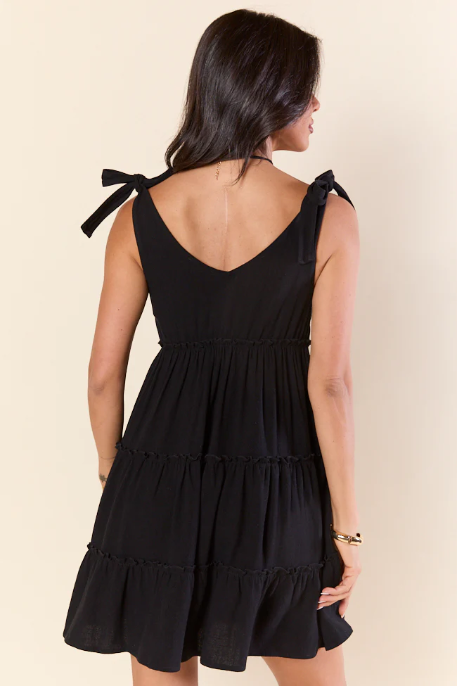 Sweetly Tied Black Tie Shoulder Mini Dress