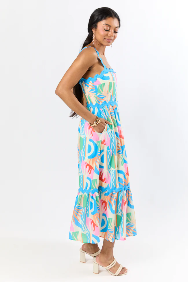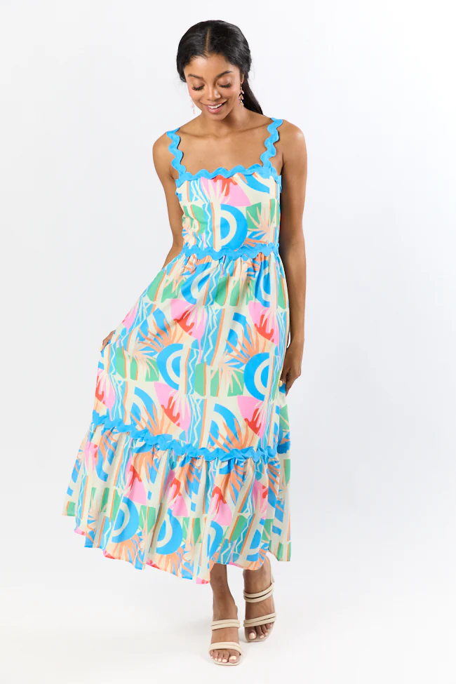Tropical Tango Multi Rick Rack Trim Printed Midi Dress FINAL SALE