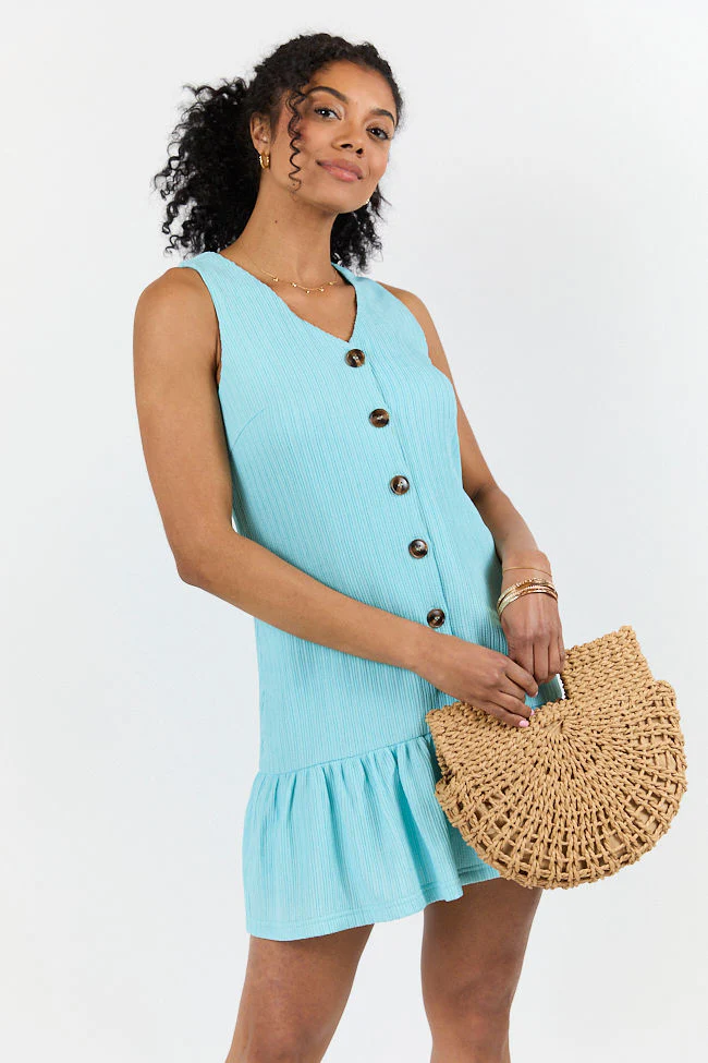 Sunset Romance Light Blue Knit Button Front Mini Dress FINAL SALE