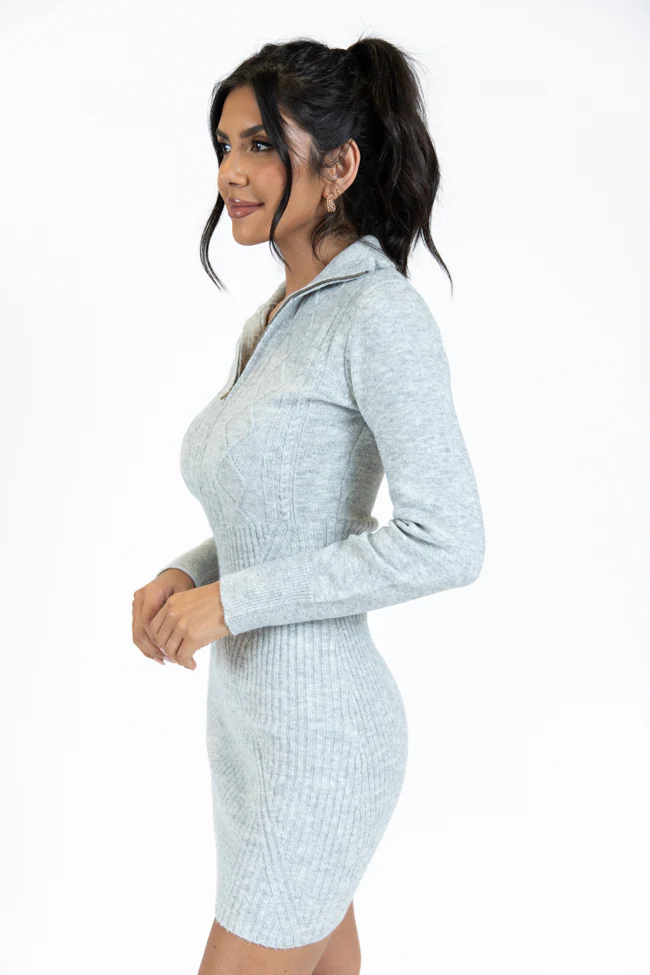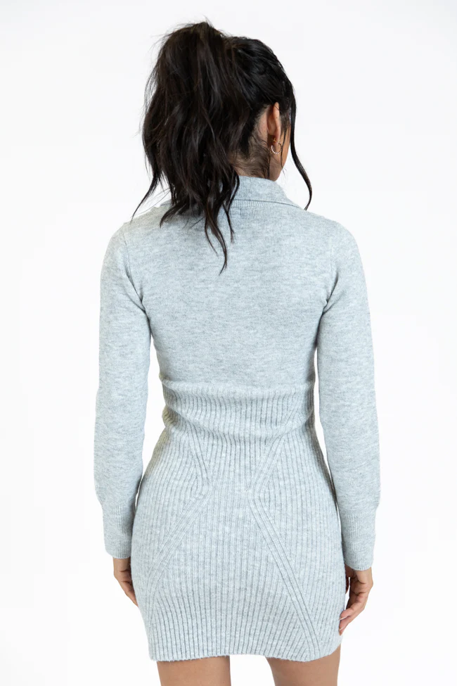 Taking Compliments Grey Quarter Zip Style Sweater Dress FINAL SALE