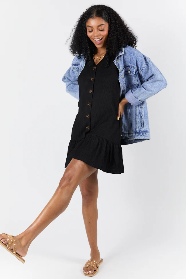 Sunset Romance Black Knit Button Front Mini Dress SALE