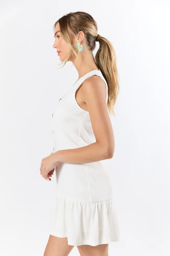 Sunset Romance White Knit Button Front Mini Dress FINAL SALE