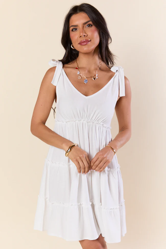 Sweetly Tied White Tie Shoulder Mini Dress FINAL SALE