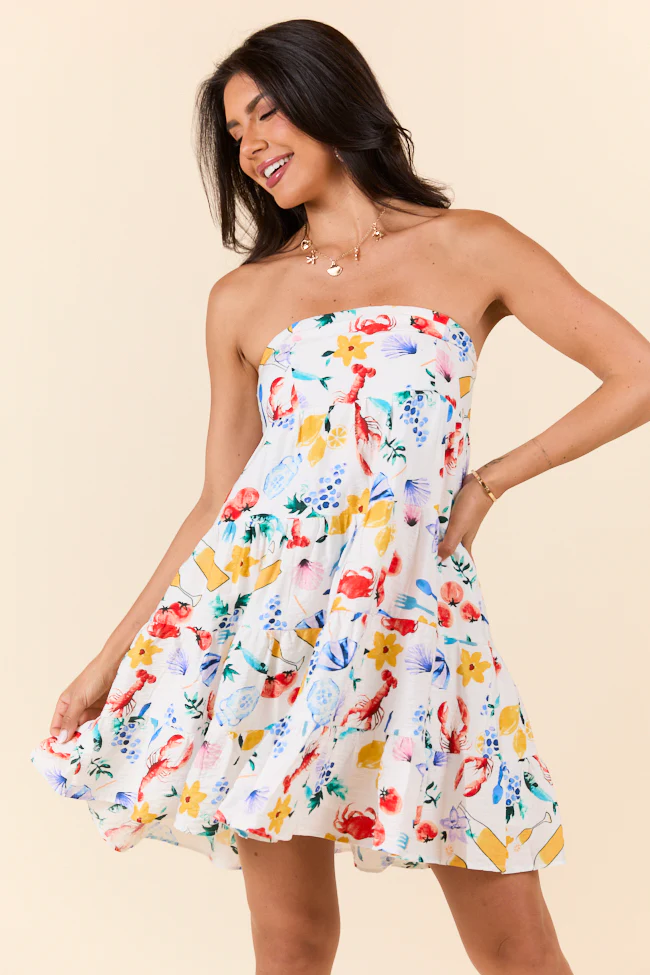 Sweet Thing Summer Girl Dinner Strapless Printed Mini Dress FINAL SALE