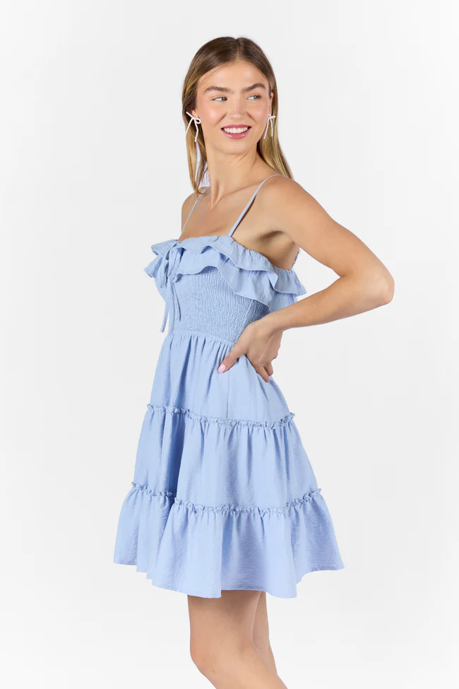 Keep My Promises Light Blue Smocked & Ruffle Detail Dress SALE