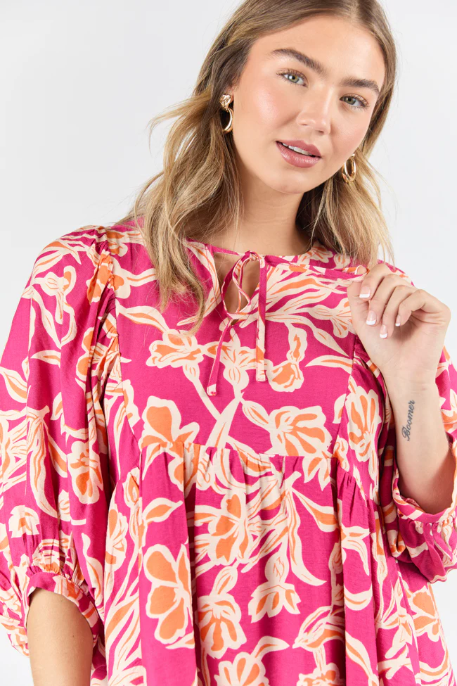 Keep The Flowers Fuchsia Floral Print Long Sleeve Mini Dress FINAL SALE