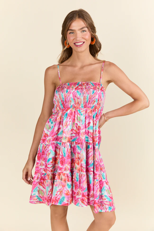 I Know A Place Orange And Pink Floral Smocked Mini Dress FINAL SALE