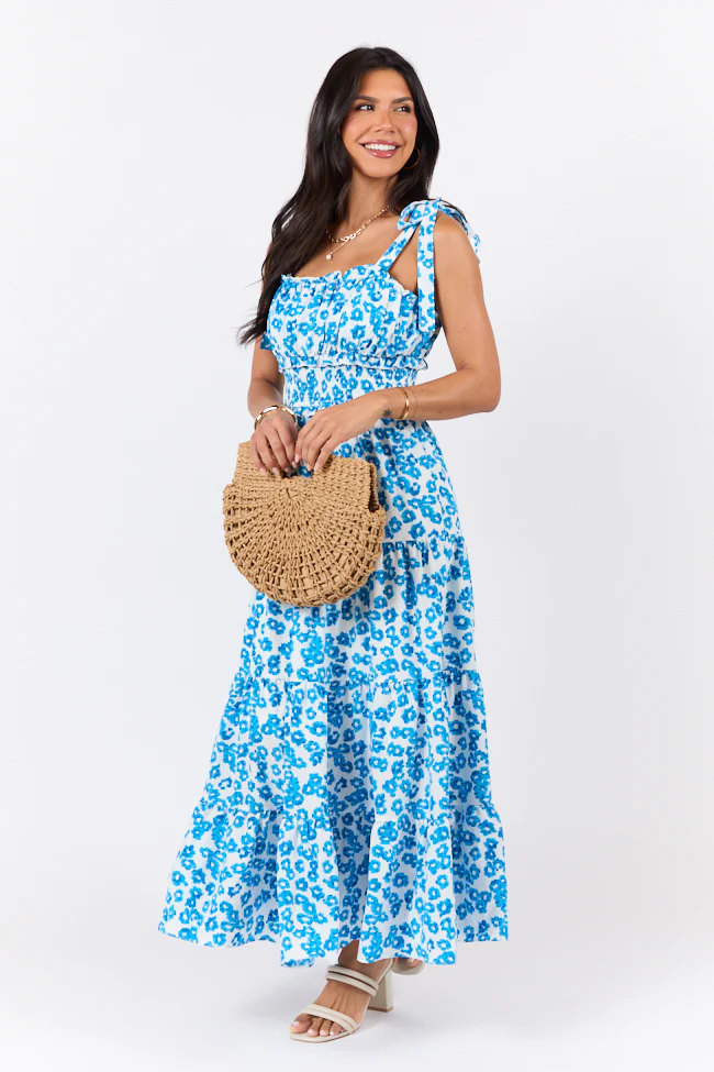Golden Days Blue Halter Neck Printed Maxi Dress FINAL SALE