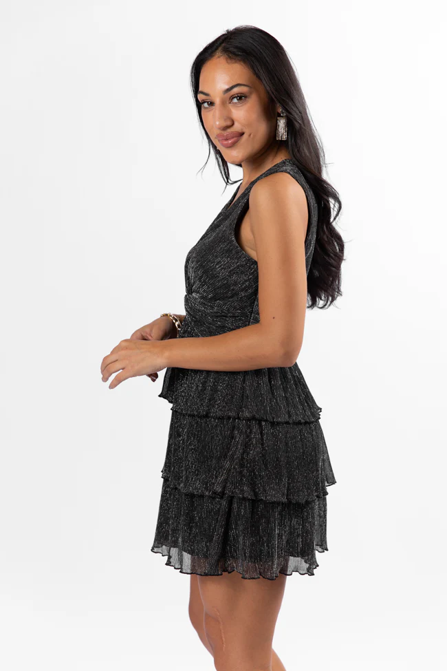 I'll Be Found Black Shimmer Tiered Dress FINAL SALE