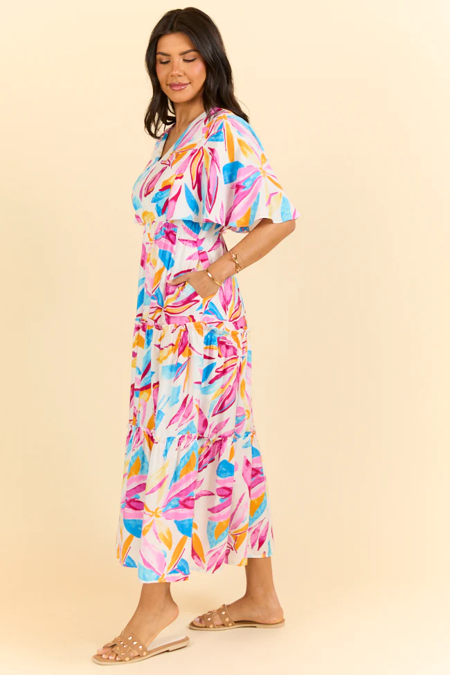 In The Wildflowers Multi Color Short Sleeve V-neck Maxi Dress FINAL SALE