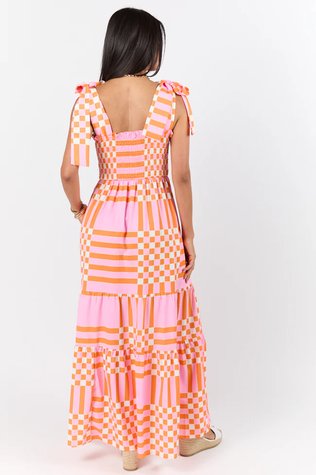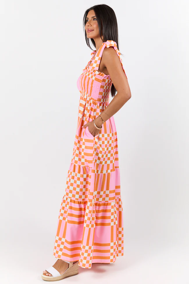 Get The Check Pink and Orange Printed Checkered Maxi Dress