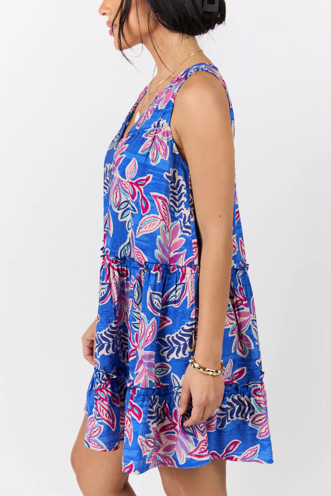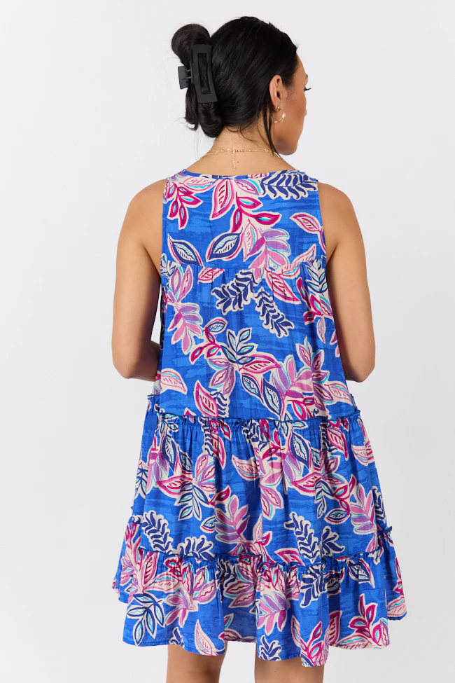 Hanging Loose Blue Multi Floral Print Tank Shirt Dress SALE