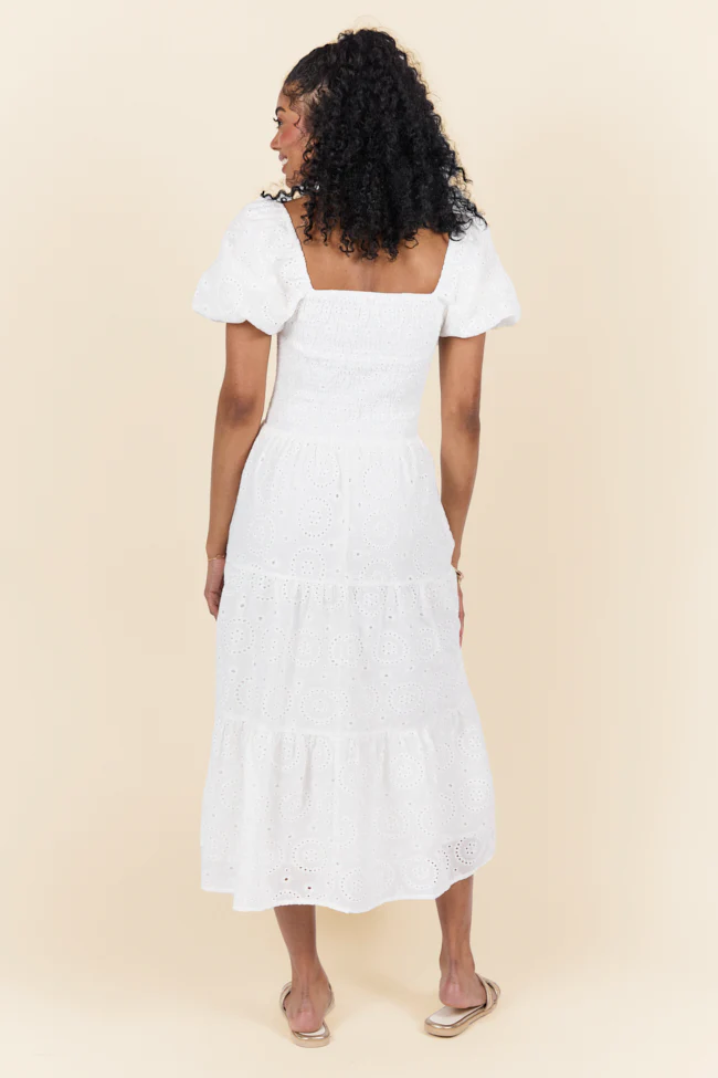 Forget Me Not White Eyelet Short Sleeve Midi Dress FINAL SALE