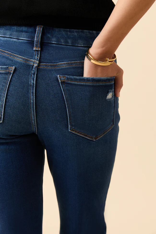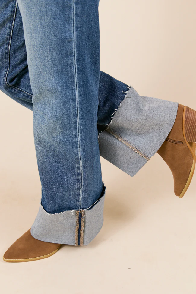 Jolie Dark Wash Mid Rise Wide Flare Cuffed Jeans