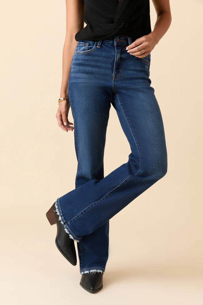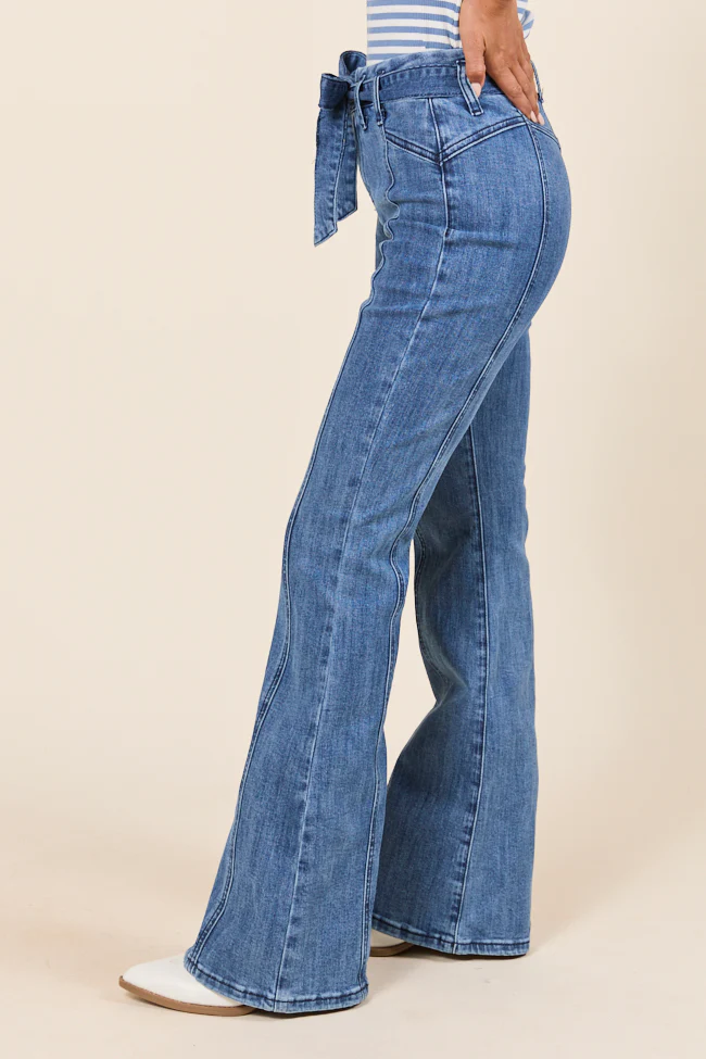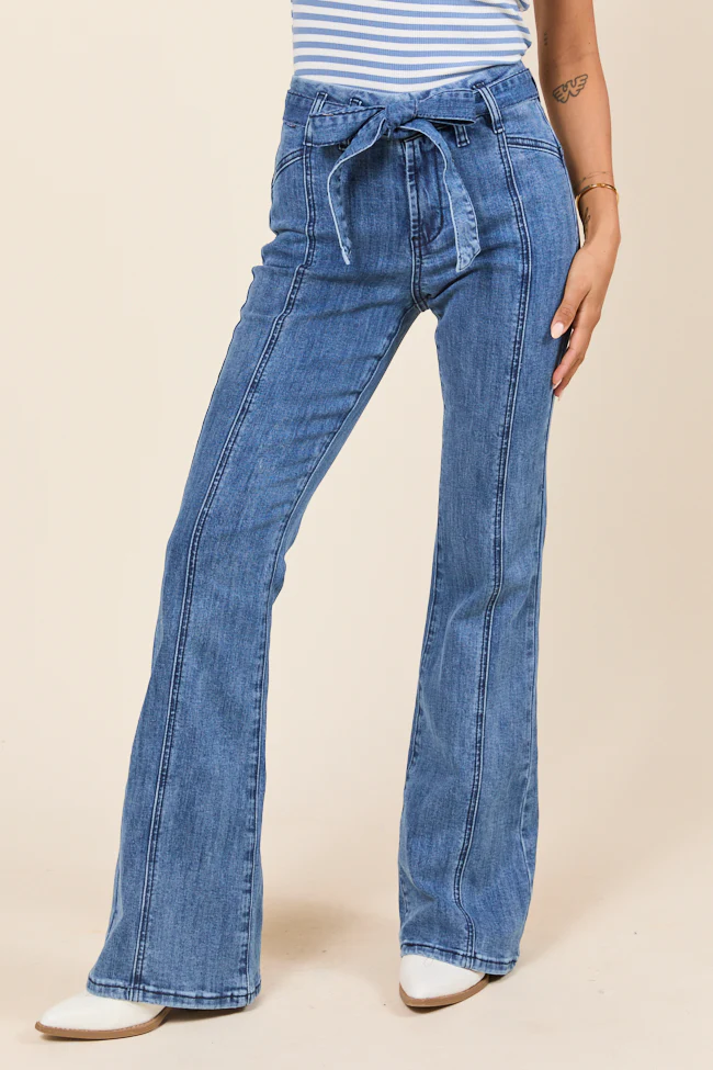 Jocelyn Dark Wash Tie Waist Flare Leg Jeans